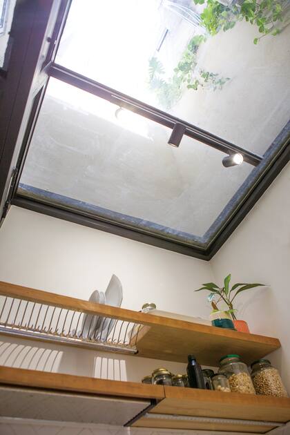 Ampliar la cocina era prioritario para los clientes: mantuvieron su ubicación, pero cambiaron el ingreso para agrandarla hacia un patio de 2x3m que techaron con un cerramiento de vidrio con ventiluz.