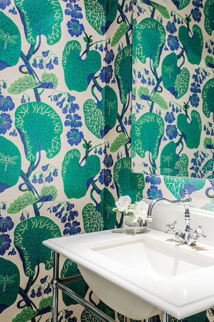 “El toilette es el lugar para jugársela y me encantó el efecto impactante de las flores”, dice Laura Wehle, diseñadora de interiores y estilista.