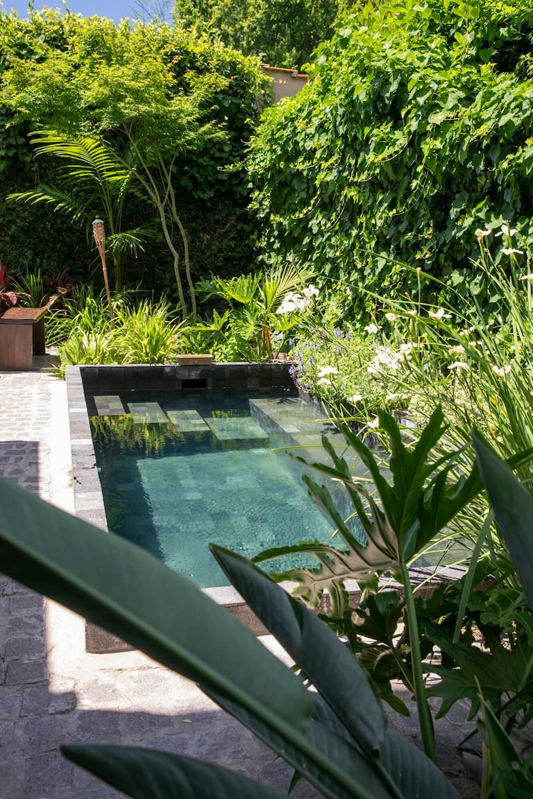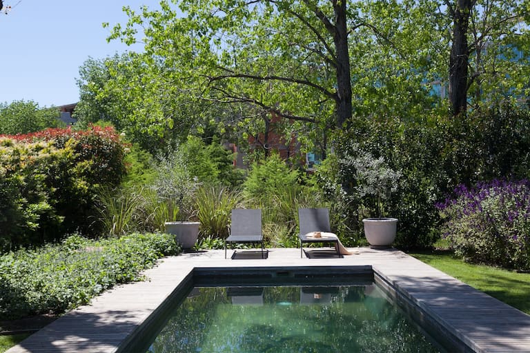 La búsqueda de una relación más directa con la naturaleza impulsa las piletas rodeadas de verde. Plantas, arbustos y árboles de gran porte actúan como marco, generan sombra y refuerzan la sensación de refugio. En estos casos, la pileta no busca protagonismo sino camuflarse, creando un clima de oasis doméstico. Es una tendencia que habla de bienestar, intimidad y conexión con el entorno.
