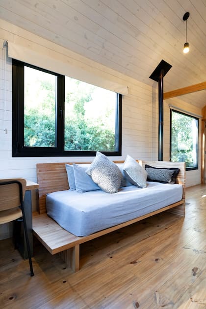 “La casa conjuga diseño, eficiencia y libertad, y está equipada con aislaciones y revestimientos adecuados para el clima patagónico porque es un producto local, algo que me interesaba mucho hacer”, nos explica. Las unidades de Alun Tiny House salen del taller listas al 90%; al llegar al lugar elegido, solo hay que apoyarlas en las plateas y conectarlas a los servicios.