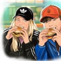 Duki apostó por un total look beige con impronta urbana: campera liviana, pantalón ancho bordado con flores rojas y verdes y remera estampada. Completó el conjunto con gafas oscuras y un bolso en tonos crudo y marrón. Emilia, por su parte, eligió un trench clásico con detalles dorados y stilettos marrones.