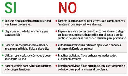 Recuadro: Los Sí y los No de la actividad física