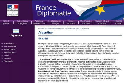 Y otro tema destacado en el documento es la circulación en auto. "Los conductores en la Argentina tienden a ser agresivos, sobre todo en Buenos Aires, y con frecuencia ignoran las normas de tráfico", asegura, y agrega: "Los vehículos viajan a menudo a velocidades excesivas".