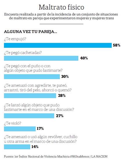 "Primero, nos preguntamos: ¿puede medirse la violencia contra las mujeres? Se midieron 15 dimensiones diferentes. Ninguna se ubica por debajo del 47% de incidencia de, por lo menos, una situación experimentada", explican Beck y Romeo en el informe. Y detallan: "A la extensión del problema se agrega la repitencia de las experiencias, lo que implica que no se trata de casos aislados".