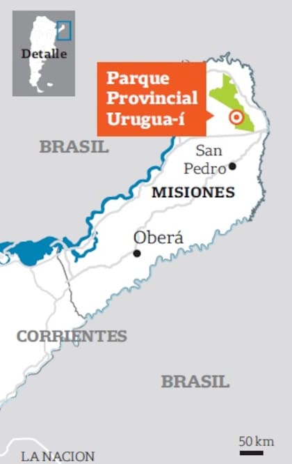 Él y Matuchaka son sólo dos de los 29 integrantes del Cuerpo de Guardaparques encargados de cuidar la flora y fauna de Misiones. Ellos dos trabajan en el Parque Provincial Urugua-í, que tiene una superficie de 84.000 hectáreas.