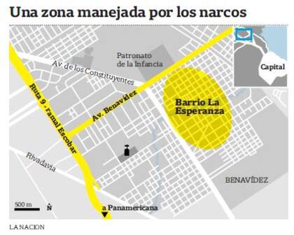 La Esperanza es un barrio de Benavídez , en el partido de Tigre que estuvo tomado por una banda de narcotraficantes, que, en cinco meses, asesinó a los dos dealers de la zona y atacó a otros tres distribuidores para eliminar la competencia. Los sicarios entraban en las viviendas de los vendedores de cocaína, les robaban la droga y el dinero, y los mataban. Ayer, tres de los integrantes de esa organización fueron condenados a prisión perpetua por uno de los homicidios.