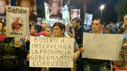 Entre las cientos de pancartas y fotos con el rostro de las víctimas que exhibían los manifestantes se podía leer un especial pedido a la ministra de Seguridad de la Nación, Patricia Bullrich:"Bullrich intervenga la provincia. Gobernantes corruptos".