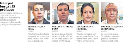 Esto se basa en que parte de los integrantes de la organización viajaban con frecuencia a esa región boliviana. Además, allí residía Diana Suárez Heredia, de 22 años. La joven es la mujer de "Mey" Vargas Fernández, que respondía a Carlos Olmedo Silva Cárdenas, alias "Mono". Este ex policía colombiano, de 47 años, es la mano derecha de Williams Triana Peña, y fue detenido en los allanamientos de la semana pasada.