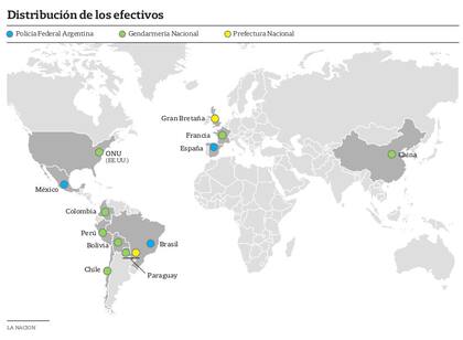 Entre los destinos otorgados nuevamente a la Gendarmería también figuran países de la región con importantes rutas de drogas, como Paraguay, Colombia, Bolivia y Perú. Otros dos países, Chile y Francia, tienen fuerzas de seguridad militarizadas, que comparten varios puntos de formación en común con la Gendarmería. Es más, en Francia los gendarmes volverán a participar de la mesa de trabajo que integran fuerzas de seguridad militarizadas del sur de Europa y el norte de África.