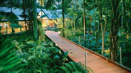 Una de las selvas más antiguas del mundo se transforma en un spa de rejuvenecimiento ubicado a lo largo del río Mossman, la selva tropical Daintree y la Gran Barrera de Coral. El hotel ofrece caminatas en la selva tropical, pozas de agua cristalina y playa. Las casas de lujo en los árboles tienen terrazas grandes con hamacas, ideales para relajarse en el corazón de la selva tropical. Los huéspedes también pueden disfrutar la cena en su restaurante en una casa en los árboles con lados abiertos.