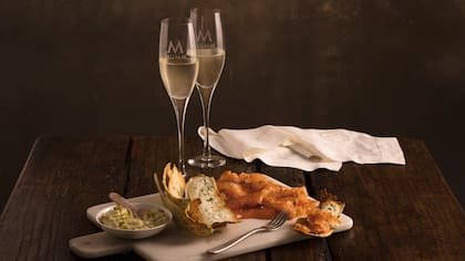Una picada de lujo, que requiere al menos dos días de antelación para elaborarla, pero que sorprenderá a todos los comensales. Servida junto a una copa del fresco extra brut de esta clásica bodega mendocina, logra una combinación ideal para disfrutar en las noches de verano.