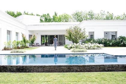 Rodeada de árboles añosos y palmeras, esta casa muestra su mejor cara. La pileta refleja las copas que en la primavera se llena de verdes texturas.