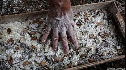 El lentisco, entina o mata charneca, cultivada en la isla griega de Chios, proporciona una resina translúcida que se vuelve rígida y quebradiza cuando se seca al sol.
