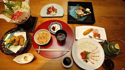 La cocina nipona tradicional se basa en ingredientes locales como arroz, pescado, vegetales y plantas silvestres comestibles.