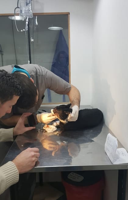 En cuanto lograron tenerlo con ellas, Daniela y sus compañeras de Salvá un gato (el grupo de rescate y ayuda a animales en situación de calle que armaron con ánimo de dar una mano en casos de este tipo) lo llevaron al veterinario. "El veterinario y el cirujano aún no pueden entender qué le pasó a Thor. Su mandíbula y paladar están rotos en varios pedazos, perdió uno de sus ojos y todavía no se sabe qué va a pasar con el otro. Pero el animal, en rasgos generales, se encontraba bien. Su mayor dificultad está en la ingesta de alimentos ya que no puede comer solo por lo que se decidió colocarle una sonda", explica Daniela.