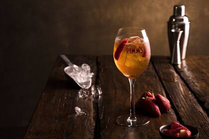 Colocar abundante hielo partido en un copón de vino. Agregar el Pimm’s, luego el espumante dulce y finalmente la frutilla en láminas. Remover suavemente con una cuchara larga para integrar. Opcional: se puede elaborar en una copa flauta previamente refrescada, sin hielo, con los ingredientes ya fríos.