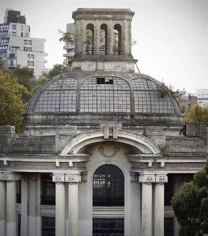 La cúpula del Pabellón del Centenario se ve desde el estacionamiento del centro comercial que funciona en el mismo predio de Cerviño y Bullrich, en Palermo. El edificio diseñado por el arquitecto italiano Virginio Colombo, con más de 100 años de antigüedad, es el único que sigue en pie de los 35 construidos para los festejos de 1910. La vegetación gana terreno entre los vidrios históricos y la estructura continúa sometida a un lento proceso de deterioro mientras se define su futuro.