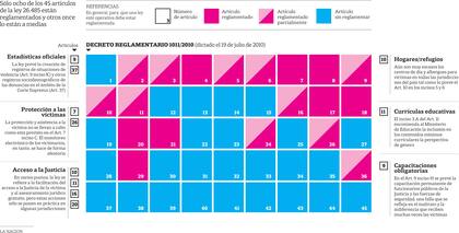 Así, la ley es letra muerta. De sus 45 artículos, apenas ocho están reglamentados y once, sólo de manera parcial.