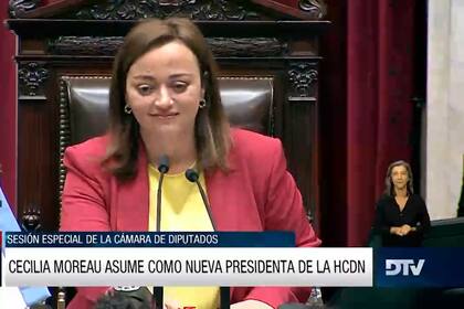 Luego de una votación favorable, la diputada asumió como presidenta de la Cámara de Diputados. En su discurso de asunción, Moreau agradeció “el honor que significa haber sido designada como presidenta” y adelantó que asume “el compromiso de cumplir con esta responsabilidad en representación de nuestro espacio político, pero también de expresar a la máxima institución de la representación popular y democrática en todos sus matices y diversidades”.