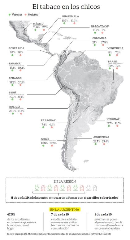MONTEVIDEO.- El 80% de los chicos de 12 años o más que probó un cigarrillo en América latina empezó con algún producto saborizado. Los hay frutales, especiados, con sabor a chocolate, golosinas o tragos como el mojito o el daiquiri, además de los mentolados, pero con nombres más exóticos y en inglés, como citrus o purple mint, fusion o ice blast y fresh, entre otros.