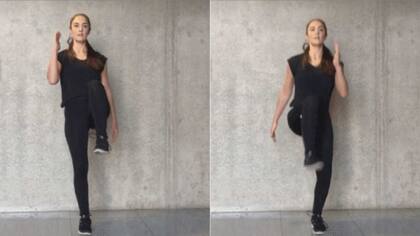 - Repetí los movimientos, como si estuvieras corriendo con las rodillas en alto, pero en el lugar