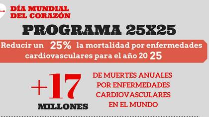En el Día Mundial del Corazón que se celebra hoy, la Sociedad Argentina de Cardiología (SAC) y su brazo a la comunidad, la Fundación Cardiológica Argentina (FCA), se suman a la iniciativa 25x25 que propone la OMS y la Federación Mundial del Corazón (World Heart Federation -WHF) para reducir un 25% la mortalidad prematura por enfermedades cardiovasculares para el año 2025.