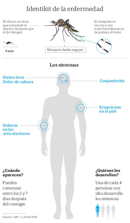 El principal riesgo asociado con la enfermedad que provoca este virus son las malformaciones congénitas cuando las embarazadas contraen la infección. Por eso, la Organización Mundial de la Salud recomendó esta semana que las mujeres que estén embarazadas o piensen que podrían estarlo no viajen a los países donde está circulando el virus, como Haití, Bolivia, Chile, Brasil, Colombia, Paraguay, El Salvador, Ecuador, Barbados, Panamá, Venezuela, México, Honduras y Puerto Rico. "Ahora más que nunca hay que enfatizar el consejo de que las embarazadas no viajen durante el primero o segundo trimestre de gestación a los países donde circula el virus -insistió López-. Y a las mujeres en edad fértil que tengan que viajar a esos países, la recomendación es evitar quedar embarazada."