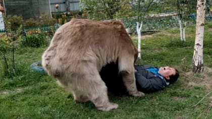 Conocé a la increíble familia rusa que adoptó a un oso gigante como mascota