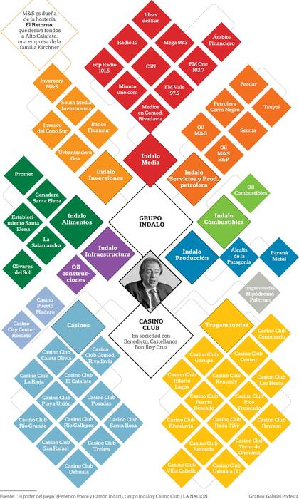 Indalo Media es sólo una de las múltiples áreas de negocios del grupo familiar que comenzó con una empresa forrajera en 1966 y que desde 1976 es timoneada por López. A los medios se suman las firmas financieras, energéticas y de construcción. Y, por fuera de Indalo, López lidera el mayor conglomerado de juegos de azar del país.