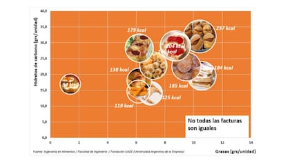 Cinco personas, entre profesores y alumnos de la carrera que colaboraron con el análisis de datos, se ocuparon de examinar las recetas estándar de distintos tipos de facturas de acuerdo al relevamiento en una decena de panaderías. “Así, se pudo calcular la composición nutricional de cada ingrediente en particular”, explicó a LA NACION Martín Piña, director de la carrera de Ingeniería de Alimentos de la Fundación UADE.