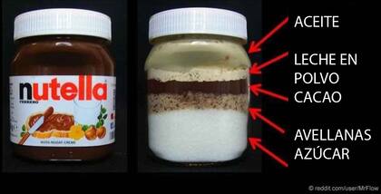 A alguien se le ocurrió poner estos valores en un gráfico muy elocuente para entender exactamente qué comemos cuando comemos Nutella y el resultado, compartido en Reddit, se convirtió en una foto viral.