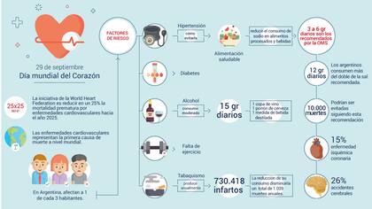 Cada 29 de septiembre se celebra el Día Mundial del Corazón para concientizar sobre las enfermedades cardiovasculares. Este año, la premisa de la Organización Mundial de la Salud ( OMS ) y la Federación Mundial del Corazón (WHF, por sus siglas en inglés) es “25x25”, es decir, trabajar en prevención para reducir un 25% la mortalidad prematura por enfermedad cardiovascular para el año 2025.