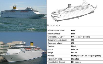 Costa Romantica zarpó el lunes de Río de Janeiro y debía llegar hoy a Buenos Aires. La embarcación fue construida en 1993 en el astillero Fincatieri de Venecia y puesto en servicio ese mismo año. Pesa 53.926 toneladas y tiene capacidad para 1680 pasajeros y 590 tripulantes