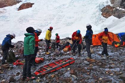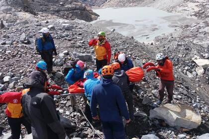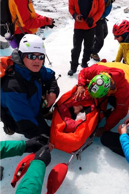 Tras dar aviso por un teléfono satelital de lo sucedido, se montó un operativo de rescate que incluyó a 32 rescatistas, entre ellos de Gendarmería, Parques Nacionales , Comisión de Auxilio, y un helicóptero del Ejército. El rescate duró 14 horas, según indicaron a LA NACION fuentes oficiales.