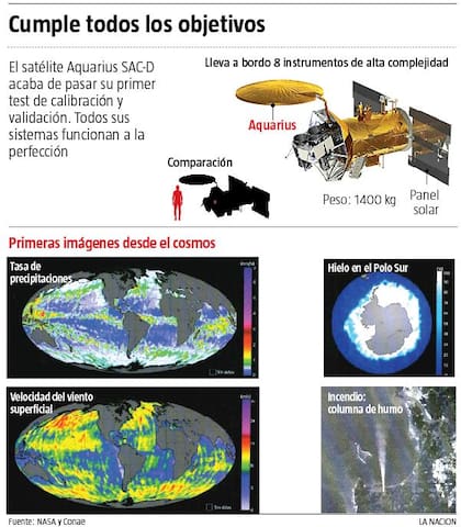 El último satélite de la Comisión Nacional de Actividades Espaciales (el SAC-D/Aquarius, lanzado desde la Base Vandenberg, de la NASA, el 10 de junio del año pasado) acaba de pasar esa prueba con honores: los primeros resultados obtenidos por este verdadero observatorio espacial que le está tomando el pulso al planeta a 650 km de altura sobre el nivel del mar y mientras se desplaza a 28.000 kilómetros por hora están colmando todas las expectativas.