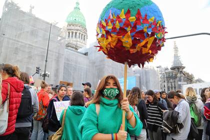 A medida que los manifestantes avanzaban por Avenida de Mayo, la marcha por el clima comenzó a mezclarse con la movilización por la legalización del aborto, que hacía el recorrido inverso: del Congreso a Plaza de Mayo. Ambas marchas compartieron el espacio y convivieron de manera pacífica.