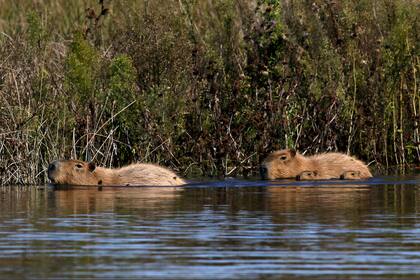 Comparten este territorio ampliado con coipos, conocidos como "falsa nutria" que como los carpinchos es de la familia de los roedores y tienen hábitos acuáticos. Se mueven por la orilla de ese espejo de agua que se nutre del arroyo De los Padres y allí encuentran su principal alimento, hierbas frescas.
