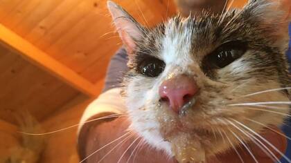 Gioia, la gatita con nombre que significa "Alegría", fue encontrada el lunes 29 de agosto deshidratada luego de haber estado cinco días bajo los escombros. Inmediatamente la hidrataron y la llevaron a que le hicieran un chequeo, antes del esperado reencuentro con su dueña.