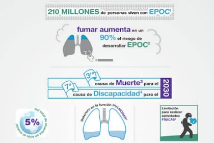 "La EPOC suele manifestarse en personas mayores de 40 años que hayan estado expuestos a factores de riesgo, de los cuales el más importante es el tabaquismo. Es una enfermedad progresiva y muy discapacitante. A medida que progresa, quienes la padecen pueden sentirse agotados con subir un tramo de escalera, pasear el perro o simplemente vestirse por la mañana", explicó a LA NACION Jorge Cáneva, Jefe de la División Neumonología del Hospital Universitario Fundación Favaloro.