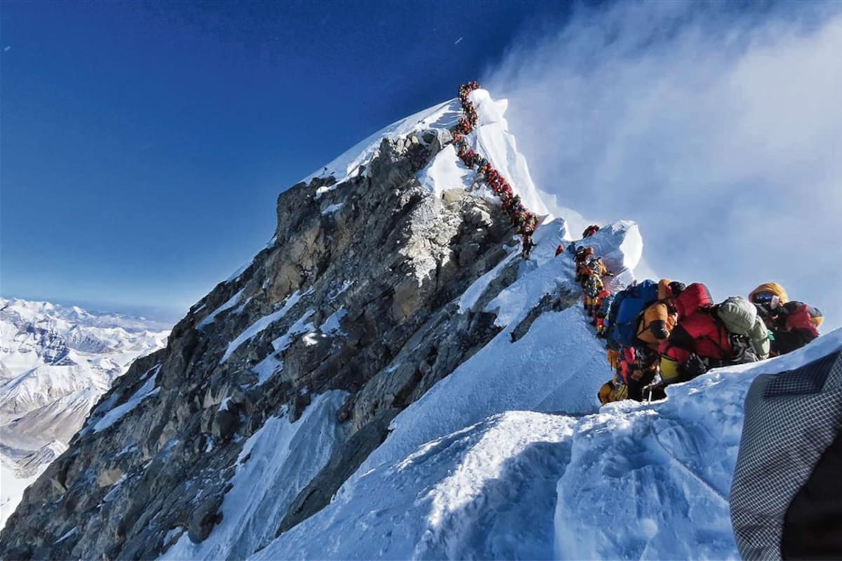 Más de 200 alpinistas hicieron una extensa fila a metros de la cumbre, que provocó demoras en los ascensos y los descensos en condiciones extremas; un montañista argentino debió ser rescatado
