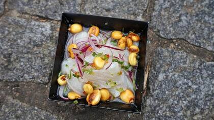 El restaurante La Mar, de Gastón Acurio, cuya sede, en Lima, figura entre los 50 mejores de América latina, según el ranking de la revista inglesa Restaurant, está en la feria con su icónico ceviche de receta clásica. "El Cebichón" (con "b", en lugar de "v"), tal es el nombre del plato, cuesta $ 70 y consiste en la pesca del día cortada en cubos, leche de tigre (jugo del ceviche mezclado con vino blanco, vodka o pisco, ají verde molido, sal y pimienta) y mucho limón. También, en el puesto, se sirve un Chorifish a $ 80, que es una creación del chef Anthony Vasquez. En lugar de estar preparado con carne, el cocinero peruano eligió al lenguado como materia prima. La propuesta está acompañada de chimichurri peruano.