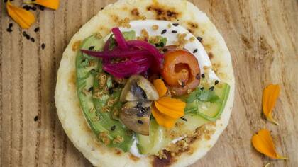 El food truck del restaurante colombiano I Latina, en Villa Crespo, es más bien un tractor imponente, que convoca a los amantes de la comida con un letrero en el que se lee: "Pura sabrosura". Allí, el plato estrella son las arepas -una tortilla ancha de maíz que sirve de base para infinitas combinaciones en Colombia y Venezuela-. Este año, el restaurante ofrece una versión vegetariana, con vegetales asados, palta, emulsión de palmitos y quinoa, a $ 50; otra, con pollo asado en salsa de ananá picante, hinojo y ají amarillo, a $ 70, y una tercera, con cerdo a las brasas en salsa barbacoa de guayaba, chicharrón y cebollas, a $ 80. Son precios que están muy por debajo de los $ 1000 por persona que cuesta el menú por pasos del restaurante.