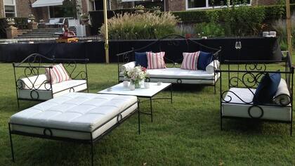 También se alquilan gazebos de hierro forjado para ceremonias de casamiento o similares, con un precio que ronda los $ 1700, a los que se suman el precio de las sillas, mesitas, etcétera (entre 600 y 1000 pesos), dice Daniela Zdrodowski, propietaria de Te armo el living. Para el interior de los hogares, esta firma ofrece livings con funda, que se alquilan desde $1200 el juego.