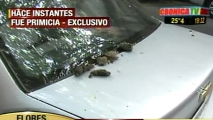 La alarma de un auto sonó 36 horas y provocó la furia de los vecinos, que atentaron contra el vehículo y le arrojaron pomelos, naranjazos, papas, y hasta caca, entre otros restos de basura. Además, el auto presenta múltiples rayones, marcas de excremento de paloma, 3 ópticas rotas, el espejo lateral izquierdo destrozado, golpes en el parabrisas y varios carteles con muy fuertes insultos.