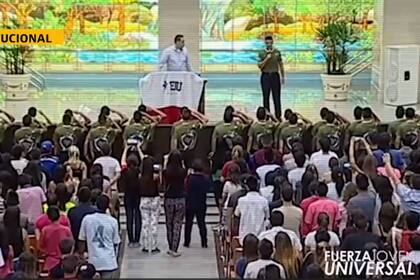 En los últimos días un curioso video institucional de la Iglesia Universal Reino de Dios (IURD) comenzó a circular en las redes sociales. Allí se puede ver a un grupo de jóvenes ingresar al templo, ubicado en pleno barrio de Almagro, marchando con impronta militar con uniformes de color verde y espadas dibujadas en las espaldas de sus remeras cruzando la sigla GA.