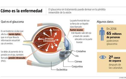 "Dentro del ojo hay un líquido transparente que nuestro cuerpo produce y elimina continuamente. Si se bloquea el drenaje de este líquido por sus canales naturales, se produce acumulación y aumento de presión dentro del ojo. Esta presión aumentada disminuye el flujo de sangre y comprime el nervio óptico, llevando a la pérdida de la visión", explicó Daniel Grigera, jefe del Servicio de Glaucoma del Hospital Oftalmológico Santa Lucía.