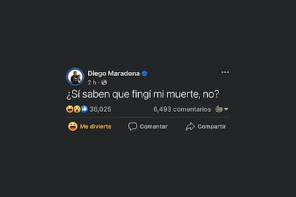 “¿Si saben que fingí mi muerte, no?”, fue la primera de las publicaciones hechas por el “falso Maradona” alrededor de las 19 ante un total de 12 millones de seguidores. “¿No era un abducción extraterrestre?”, consultó un fanático, que recibió la contestación “no digas mier…”.