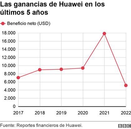 Los efectos de las condiciones adversas que ha debido enfrentar finalmente se sintieron el año pasado, cuando la empresa con sede en Shenzhen -llamado el Silicon Valley chino- solo pudo generar un beneficio neto de US$5.200 millones, es decir, 69% menos que el periodo previo.