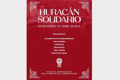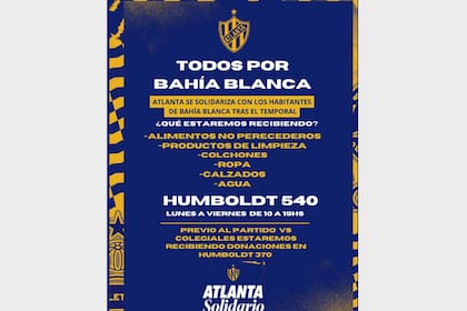 Como en otras ocasiones, prácticamente todas las instituciones deportivas se solidarizaron con la situación en Bahía Blanca y algunas ofrecieron sus instalaciones para donaciones. Independiente, Racing, River, Boca, Lanús, Chacarita, San Miguel y Atlanta son algunos de los clubes del área metropolitana que montaron colectas en las sedes de sus estadios o departamentos sociales durante las últimas horas para ayudar a Bahía Blanca.