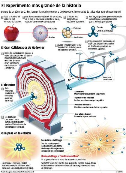 Por uno de los curiosos efectos de esta sociedad global "en vivo y en directo", hoy una de las más abstrusas elucubraciones de la física de partículas tendrá tanto rating como los récords olímpicos, los tsunamis o los desvaríos sexuales de encumbrados economistas: esta madrugada se esperaba que científicos del Centro Europeo de Investigación Nuclear (CERN, según sus siglas en francés), ubicado en la frontera francosuiza, dieran a conocer los últimos resultados de la búsqueda del bosón de Higgs, a la que en una muestra de que en la ciencia también hay lugar para el marketing se llamó "la partícula de Dios".